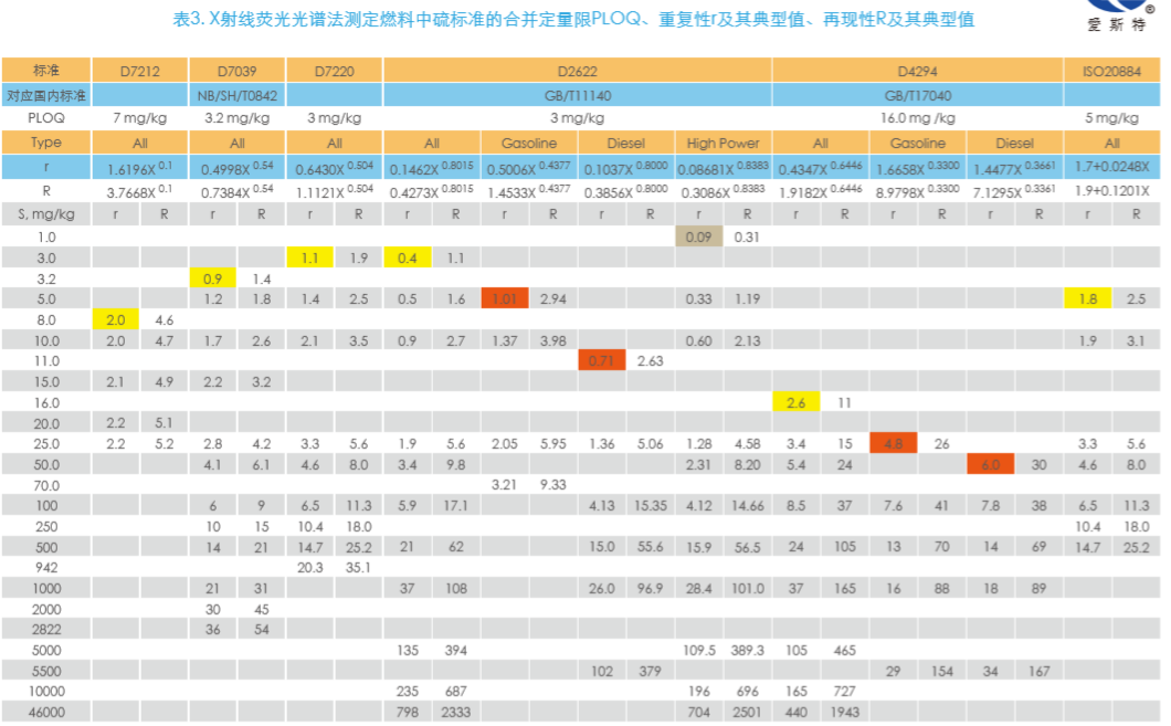 表2列舉出了幾乎一切都ISO、中華、澳大利亞有關系X電子束熒光光譜儀法分析主要燃料中硫的正規。